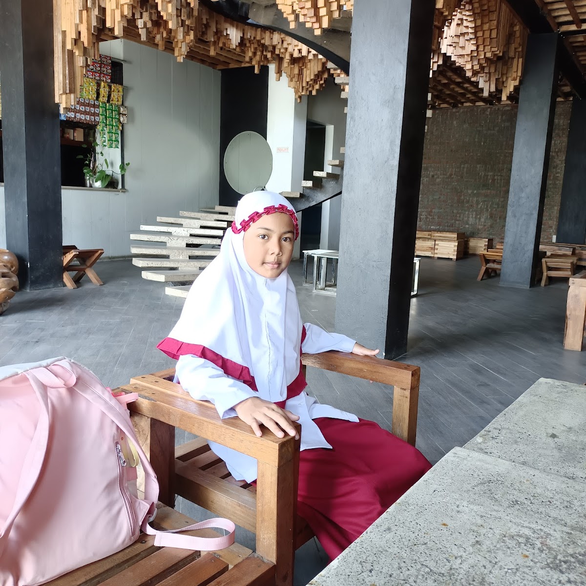 The atmosphere at BM Coffee is as unique as its offerings. As you step inside, you'll be greeted by a visually striking setup featuring an eclectic mix of wooden block chairs crafted from pallets, creating both a rustic and modern vibe. The freshly painted white walls and a prominent banner showcasing their signature drinks, such as STMJ (Susu, Telur, Madu, Jahe) and Ketan Susu, give the space an inviting touch that beckons you to settle in for a while.